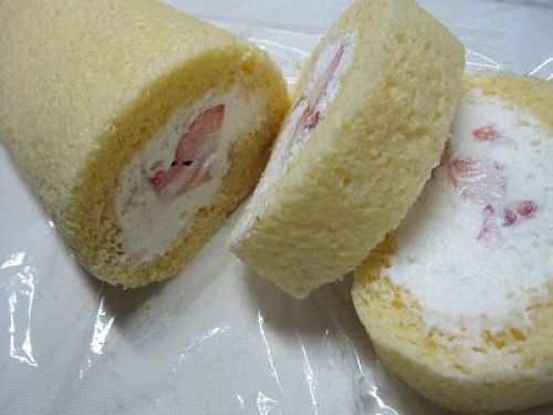 クリームを使うケーキはちっとも上手に出来ません。たぶんスポンジ焼くのが下手なんでしょう。やっとシフォンが自分なりに満足出来て安定してきたので再度ロールケーキに挑戦してみました。クリームがダレでぺちゃんこになってうまく巻けなかったり、巻けても冷蔵庫に入れたらぺちゃんこになってったり。安い植物性の生クリームを買っていたので乳製品だとしっかりすると聞いてあとはスポンジを頑張ればなんとかなるかなと、焼く気になったけど失敗。1つめは、焼けたけど焼き縮みして生地がぺちゃんこになっちゃった。薄~い生地に巻かれたクリームはバランスが悪くって持てないしぃ~。2つめは焼き温度と時間。レシピに180℃15分って書いてあってそのまま焼いちゃったら焼きすぎてパッサパサ。折れるので巻くことも出来ない。クリームも用意してあったのでホットケーキと称して食べました。3つめはガスオーブンに合わせて、170℃10分で焼いたら出来たぁ!それでも焼き皮?ペロペロ~と剥がしたら細かい気泡がいっぱいあってたぶん、これではダメなんだろうなぁと思ったけど、巻いちゃえ!!じっくり見るとキメが粗いのよね~。冷蔵庫で一晩寝かせたらシットリ。ナントカ見た目もセーフ。味も食べられるからセーフのロールケーキです。う~ん、これで満足して良いのかな?リベンジするべきかな?でもさぁリベンジが失敗だったら落ち込むだろうなぁ・・・やっぱ苦手だわぁ。食べるのは幾つでも食べれちゃうほど大得意なんだけどね。(^^*)v