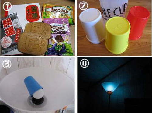 お正月休み最後の日です。お休み中は電気屋さんやデパートへブラブラして私は暮れの30日まで仕事だったので美容院にも行けず、欲しかったブーツも買えず、美容院は今日までお休みなので仕事始めの明日もボサボサ出勤です。ブーツは見て回ったけど気に入った物がなくって諦め。メタボちゃんは家電。今のプリンターの給紙がトレイしか無くって面倒で、封筒印刷は詰まるので電気屋さん巡りをしたけど、気に入ったお値打ち品はどこも在庫がなくってネットで購入。結局ネットかい!になるけど、翌々日届くのは嬉しいですね。プリンターが3台になっちゃって、置く場所確保に大掃除しました。ついでに要らないCDやフロッピーを出したらゴミ袋1袋になって本当に暮れに1人でやってよぉ~って感じ。でも綺麗になっていいか。1)買物のついでに八百津の煎餅屋さんへ寄ったら、お年賀で干支せん貰ったよ。きのこの山は、北海道メロン味と、ぶどう味をまた見つけたので買って来たよ。2)前のブログで紹介した寝室のスタンド。緑ではちょっと明るいので替えてみた。ピクニック用のカップがあったので被せてみます。赤は緊急みたいで変(笑)3)中はこんな風になってます。電球は熱を持つけど、LEDは全然熱くなりません。カップを赤・黄・緑・青と被せてみました。黄色は余計に意味なく眩しかった。4)やっぱり青が一番落ち着く色です。寝るときは丁度良いけど朝は暗めかな?でも、周りは見える位で、電気の豆球よりはあかるいのでコレに決定したよ。さて、朝寝坊しても腹は減る。遊んでいても腹は減る。だからお昼ご飯作ろ。午後から義妹夫婦が来るので、最後の嫁仕事しまぁす。明日からは平常ね。