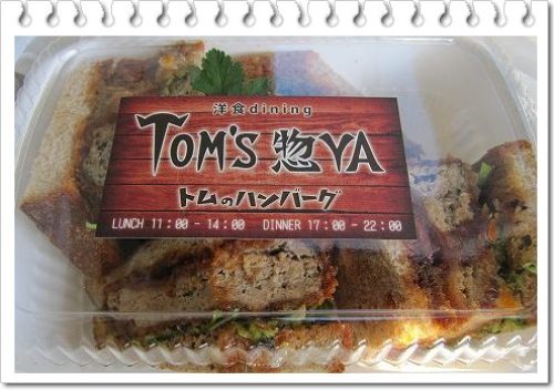 美味しいハンバーグが食べたかったんだけど、お洒落なお店で1人ランチは勇気がいるので予約してテイクアウトしてきました。美濃加茂市のTOM'S惣YAでランチに行った事はあるんですが、お持帰りも出来ると言う事で、メンチカツサンドを頂きます。パックのシールがオリジナルでちょっと高級感。素敵ですね。ハンバーグ好きの息子の分も買って家にお持帰りしました。トムさんのハンバーグがカツになって、メンチカツサンド。分厚くジューシーなハンバーグ。パンも胚芽パンで美味しい。大きめパックです。お持帰りする値段としては高めの950円。でも、お店のランチのハンバーグよりもかなり大きいよね。熱々でカツがカリカリ!と香ばしいので、一口食べた息子が「うっま!」って。これは、この値段で正解やわぁと食べた。結構ボリュームがあるので、全部食べきれず1切れだけ味見にメタボちゃんにとっておきました。へへっ旦那にゃ1切れさ(笑)(訳は後ほど)旨いやんか。息子に残って無い?って聞いたけど夜食用にとっておくから、やらん。とかなり気に入った様子です。うちのメタボちゃんは1品料理派なので、カツ丼・牛丼・定食ラーメンが好き。オサレなワンプレートランチは行かないって言うので誘っても行こうとしない。だから一切れしかやらん。プラスサイズのハンバーグ2個乗せてくれるなら行くって。だからメタボなんやわ!他の誰か誘って行きますから結構。前に母と行った時のブログはコチラ。ずいぶん前でした。息子はそのお店、何処にある?って興味津々でしたよ。ハンバーグ食べたくなったら、お友達と行ってきてね。