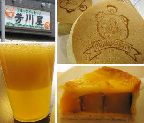 愛知県犬山市で飲み会のあったメタボちゃん。電車には乗った事がないので送ってってくれと言うので車で40分。家に帰ってまた迎えに来るのは面倒で犬山駅付近で下ろして、イトーヨーカドーに車を止めてショッピングしたよ。客層が私より年配+年配・・・えらく平均年齢が高いなぁと思いつつもけっこう専門店が入ってるね。冬物がお値打ちになっていました。来年用にコートが欲しいと思ってたら定価の30%引きの物がまた30%引き。1着買って、あとは地下へ。輸入食品のお店であれこれと買って来ました。学生の頃は、ミスタードーナッツが一番近くて犬山しか無かったので電車で買いに行ったなぁ~。駅前と言えば西のロータリーだったのに今は東側がロータリーになっててずいぶん変わったよね。懐かしいです。その前に、キッシュが食べたくてフルーツメッセージ芳川屋へ行ったよ。私、卵のキッシュが苦手なんです。パイは甘いオヤツってイメージがありパイ生地にしょっぱい卵液を入れて焼いてオカズになるのが嫌なんです。初めて食べたキッシュの卵がパサパサしてトラウマになった理由もある。もちろん美味しいお店のキッシュは好きですよ。前菜で小さいから(笑)シチューポットも食べるけど大が付くほど好きじゃ無い。パイはオヤツだ。このお店は卵焼きのキッシュじゃ無いので気になってたんです。本当はリンゴのキッシュをオヤツ感覚で頂きたかったんだけど南瓜しかなかった。リンゴのフレッシュジュースも頂きました。大きめな角切り南瓜がギュ!と詰まってます。味は自然な感じでパイは甘くなく、南瓜に良く合います。キッシュって言うよりもパンプキンパイ?どちらに傾くんだろう?これは美味しいです。黒糖蒸しパンミックスが買ってあったので、さつま芋の煮てあったのを入れて、お芋の黒糖蒸しパン。ミックス粉だから簡単。15分で完成です。200gの粉にお芋はあるだけ入れたので芋だらけ(笑)マフィンカップ6個。お芋は煮ない方が良かったけど、熱々ハフハフ♪と美味しく頂きました。