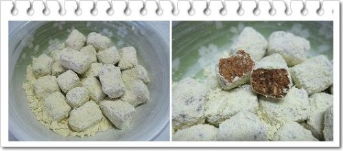 きな粉の使い残し、わらび餅やお菓子に付いてて余ったきな粉ありませんか?ほぉって置くと賞味期限も来てしまうけど、簡単にきな粉消費出来るんです。使いかけのきな粉や小袋のきな粉が47gあったんです。それと青大豆きな粉も。ウグイス餅が出来ると思って買った青大豆きな粉。↓まったく違う物でした(笑)蜂蜜をきな粉の同量47gを小さなお鍋に入れて沸騰させて(しなくていいかも)そこにきな粉を入れてスパチュラか木ベラで混ぜます。今回は胡麻も入れたよ。お団子が出来るくらいになったら、細い棒状にして斜めにカットしてもいいし丸めても可愛い。最初に余らせて取って置いたきな粉(今回は青大豆きな粉)を容器に入れて、小さく分けたきな粉団子を入れてコロコロ転がして付ければ完成。ソフトなげんこつ飴の出来上がり。賞味期限近くなって捨てないようにね。蜂蜜の代わりに水飴でもいいし、黒砂糖を少なめの水で煮詰めてもいいよ。