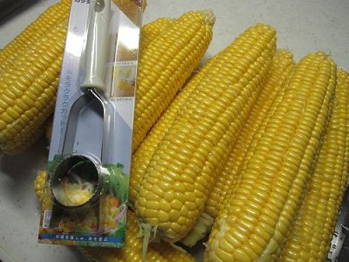 トウモロコシの大好きなメタボちゃんのために、北海道の白いトウモロコシを予約してるんだけど、なかなか来ない。待ちくたびれてるので、黄色いのは今年最後と11本買ったよ。1度に食べきれないので、コーンカッターってのも買ってみた。まだ茹でる前の写真です。実がギッシリとしていて美味しい。食べる分を置いといて、実を削って6本分冷凍しておきました。このカッター、使いにくかった。ハサミやペンチのように握れるようになっていれば、太さに合わせて使えるけど、最初から大きめの輪なので無理して握らなきゃいけない。ピーラーじゃないんだから、簡単に持ってるわけにいかずコツが要ります。でも太いトウモロコシで助かったよ。頂き物の白茄子。これは煮たり炒めたりすると崩れます。皮が固いのに中はトロットロになるので、皮を全部剥いて輪切りに切り、フライパンでゆっくりで綺麗に焼けます。パプリカって韓国産ばかりで国産は高いから作ってとジイチャンに頼んだけど、難しいから作れないって。それでも再チャレンジしていたようで4個だけ出来たよ。1個は爆ぜちゃって食べれないけど3個は買うのと同じ。でも、種と労力と時間を考えると高いパプリカだね(笑)いっぱい出来たらオレンジや黄色も~って無理かしら。夏野菜。美味しく頂いてるうちに秋風が吹いてきてますよ。秋野菜は太るのが多いのよね。さぁ冬に向けて蓄えを(笑)
