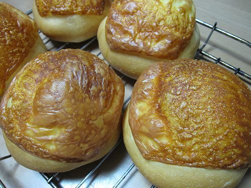 明日の朝ごパンを焼きました。見た目がとっても悪いけど驚くほどふわふわな美味しいチーズパンが焼き上がりました。前にも1度焼いてるけど、焼成時間を間違えて焼き過ぎちゃった。これは食パン1斤分のレシピで、成形を約90gの5分割にしました。成形の時に、サラダチーズを巻き込んで20分間二次発酵します。オーブンに入れる前に、溶ろけるスライスチーズを1枚づつペタ!この1枚乗せる事によってパンに蓋が出来た感じで中がフワフワ♪焼きすぎなきゃこんなに茶色くなって張り付いたりしないんだけど私の悪い癖でテキトーに余熱無しで焼くから15分でいいかとセット。やっぱガスオーブンは火力が凄いね。ゴー!って音と共に焼きすぎ。いつもパンを食べないメタボちゃんが、せっかく焼き立てだからちょっとだけ食べて見たいと言うので1/3切ったんだけど柔らかでナイフと一緒に潰れちゃう。そぉ~とパンナイフを小刻みにしてやっと切れたら、焼き立てだから美味しいんだねと言って1個完食。夜にあかんやん!パンは太るぞ。でも焼き立てのパンは良い香り。焼き立てやで食べたと連呼された。美味しかったって言えよ!!とっても嬉しい見切り品。ワゴンに入ってたんで1袋買って来ました。強力粉の大袋が沢山あるし、全粒粉も1袋買ったばかりなので1個だけ。賞味期限が1ヶ月後なので見切り品。在庫が無かったら買い占めたのに。パンに30~50%混ぜて昨日は胡桃パン焼いてます。美味しい粉で~す。