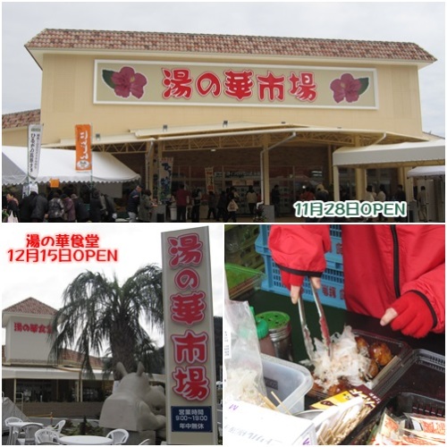 11月28日openの湯の華アイランド の「湯の花市場」TVでも放映されてオープン当日は、入場者制限や国道への流出で混み合ってたようです。今日は、義父母の送迎があって、待ち時間が1時間半あって、家で待つよりどのくらい混むのか?と渋滞見たさに(笑)時間つぶしのつもりで行ったら開店1時間後の10時だったけど、スルスル~と奥にだけど停めれちゃった。奥と行っても広くは無いのでお店まではすぐです。裏から入る事になるので裏の通路には出店。まずは正面玄関へ行って写真を撮って中にはいりました。まだ早いので魚太郎の大アサリ、かき焼きも焼いてたけど並ぶほどじゃない。えへへ。貝は好きじゃ無いので、となりの大きいたこ焼きを買って来ました。店内入って、右側がお肉、左が干物、左奥が鮮魚、真ん中は野菜。回りは乾物やビン類、冷蔵の物とかスーパーのようになってます。出口の南信州 新野団子が美味しかった。揚げ団子は初めてです。ふわっと軽い食感の団子に甘すぎる(笑)胡桃のタレで甘党にグッ♪魚太郎の干物は凄いですね~。網の上にギッシリ綺麗にならんでる。ちょっとお高いけどノドグロ(左上)奮発して4匹買っちゃいました。通路でも売っていて大きな金目の干物も(600円)買ってしまった。お肉は良い物が並んでるので、安いんだろうけど高く今回はパス。年末のすき焼には奮発しようか。今回はスペアリブを買ってきたよ。養老山麓豚です。塩麹に漬けて焼くつもり。他にも買って来てるよ。店員さんがみんな真っ赤な制服です。サルボボみたいで可愛いです。レジも2列で沢山あるので混んでいません。お買い物はスムーズです。12月15日には湯の華食堂がオープンします。また混むだろうなぁ。日にちをずらして、行こうかと思ってます。そのまえの12月8日は可茂市場一般開放がありますよ。マグロの解体ショーがあるよ。ちょこぱん家恒例かに脚食べ放題もやらなくっちゃ。忙しい(笑)