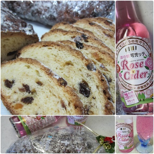 日曜日にシュトーレンを焼きました。切るのは早いかなと思ったけど焼いたら食べたい私。1日はちゃんと我慢しましたから~。(^m^)ゞちょっとパサついた感じは早く切りすぎたせいなのかな?外側も焼きすぎたかも?サクサクした感じがするんだけど。シュトーレンは薄く切ってクリスマスまでに少しづつ頂きます。しっかぁ~し、ちょこぱん家はパン感覚でパクパク食べちゃいます。今回は、いつもチョッパーグッズを送ってくれてるぴあちゃんに。前から送ろうと思ってた可児ッテのローズサイダーも一緒。香料だけってのは分ってるけど、ピンク色も可愛いからいいかな。今回は沢山焼いたんだけど行き先が決まってて、うちの1本確保も今日、全部なくなりました。焼いて2日目に無くなるって、どぉよ。お菓子タイプのシュトーレンは結構大変なので、パンタイプのクリストシュトーレンをクリスマス前に焼こうと思ってたけど思ってるだけで、あと1週間。すぐに日が経つので無理だな。