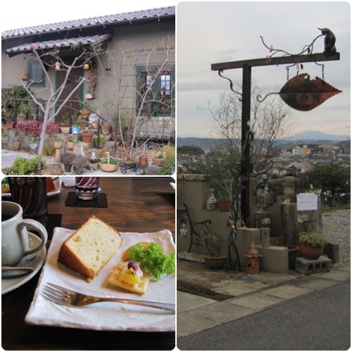 食事の後に美味しい珈琲飲みたいね~って事になって、可児市禅台寺の樹の萌(きのめぐみ)に行きました。きゃぁ♪看板に猫ちゃんに乗ってる。枯葉がぶら下がってるような看板に、下向きの猫ちゃんの耳も枯葉みたい。前回のブログと比べるとよく分ります。前回は店内の写真もいっぱいです。珈琲は450円で、朝はモーニングが付き、午後からはシフォンが付きます。車が1台しかなかったのに席には人がいっぱい。みんな歩いて来れる人ね。平日なのに常連さんが入れ替わり入ってくるアットホームなお店です。常連さんの多いお店は入りにくいんですが、ここはギャラリーもあってマスターと話をすると他のお客さんも混じったり居心地のいいお店です。映ってないけど、外の景色のもう少し左には雪化粧した御嶽山が見えるの。晴天だったら、珈琲を飲みながら、ぼぉ~っと見てるのも素敵だよ~。