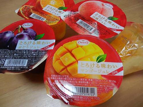 ネットでお買い物は、ほとんどが楽天で、あとはamazonやYahooショッピング。毎月のクレジットも嵩んでくるので控えていますが、メールも届くのでヤバイ!ここ数年は、お試し価格や、訳あり商品のショップもあって、ついポチリ!(笑)くまポン・グルーポン・は良く見ます。モラタメ・モグナビ・モニプラ他、色々。先日は、サンプル百貨店で「たらみ とろける味わいシリーズ」が当たりました。いつもは、ノーマルの商品を買うんですが、とろける・・・ってのは初めてです。6種類貰ったよ。いつもの倍量の大きいゼリーです。ゼリー部分がとろんとろん。どれにしようかなと選んでると旦那にマンゴー取られたぁ!じゃ桃にするかな。ミックスをガラスの器に出してみました。アガーで作ったゼリーのように、柔らかいとろとろジュレです。果物が缶詰っぽく大きいし沢山入ってるよ。今日の夕飯は、春巻・いかの唐揚げ。タコの梅酢・煮南瓜・ごちそうさん。