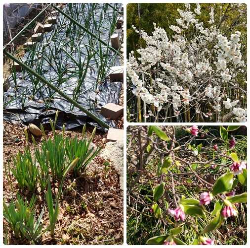 ランチも行ってないから写真が無いので庭の花を撮ってきました。玄関の前の紅葉の下には水仙が出てきてます。まだ蕾で地味です。その向こうは、旦那ちゃんが植えた玉ねぎ。本当は花壇なんだけどね(笑)山側の畑には猪が来るから、玄関前なら駐車場もあるんで大丈夫だろうと。花壇に玉ねぎ100本。取りに行くには近くていいけど地味だね~。水仙の奥には沈丁花。大きな木は切ってしまったので接木で小さい。金木製も切ってしまったので今年は香りはあんまり楽しめないです。上の木は南高梅の花です。これだけ花が付いていたらいっぱい梅がなるのかな?花より団子のちょこぱん家。私は植物は枯らす人です。お世話はみんな義母のお仕事。暮れに貰ったシクラメンも枯れたけど実家にあげたシクラメンは今も綺麗に咲いてます。私には向かないね。