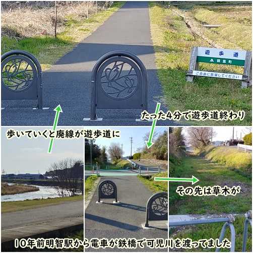 遊歩道は途中で終わり。続く廃線跡は何もしてないので通れないです。