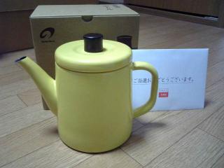 丸美屋「家族のお茶漬け」キャンペーンで野田琺瑯ポトル 黄色亀田製菓×地元スーパーボジョレーヌーボーとチーズリッチ2袋 ×2口が当選しましたボジョレーはパパがさっそく飲んで美味しいと言っておりました