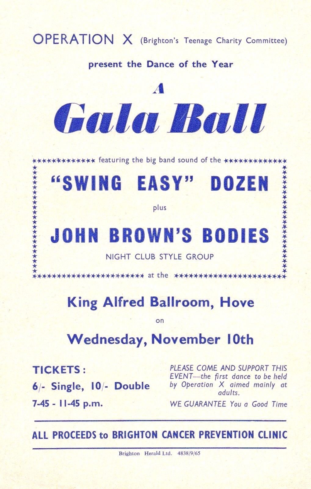 Keith Emerson - 1965 John Brown's Bodies flyer and ticket for show in Hove.