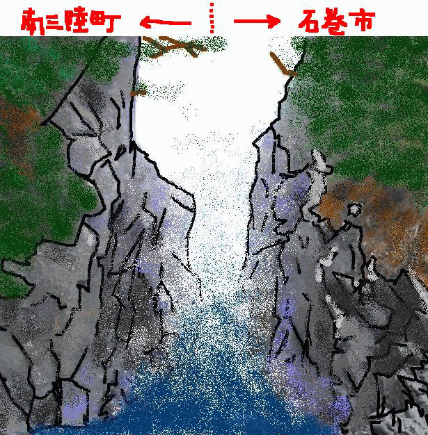仙台駅から快速:南三陸号で1時間少々山あいを抜けて突然海がひらけるとすぐに志津川駅に到着しました駅はこざっぱりとしていてほんとうは観光資源がたっぷり豊富な町としては少々おとなしめの印象ですまず名所「神割崎(かみわりざき)」へ向かいます高台の見晴らし良い場所から階段を降りていくとたしかに大きな岩が真っ二つ!昔むかし村や国の境界が明確でなかったころ浜に上がった鯨をめぐって二つの村が争いを始めたこれを見て怒った神様が、鯨を岩ごと大両断!人々は畏れて争いを収めた・・・という言い伝えがありますザーッ ダ! ダダーン! ザパ ーッ その境がそのまま今に引き継がれて岩の向かって左が南三陸町、右が石巻市標石が岩の裂け目に向かって真っ直ぐその境目を刻んでいます言い伝えが「その後二つの村は仲良くなって・・・」とはならず今も境界が残るということは、その後も争いは絶えなかったのでしょう波が岩の裂け目を叩く音がときどき「ダ・ダーン!」と腹に響きますう~ん、神様はまだ怒っているのかもしれないな~ちなみに年に数回、岩の裂け目から日の出が見えるそうです写真を見ましたが、正に神々しく美しいものでした*ここのレストランで南三陸最初の食事をいただきましたサッと湯通しした刺身、みそ焼き、フライと三種のカキ三昧メカブ、ワカメ、もずくの海草三種そしてツブ刺、地ガレイの煮つけ、ウニ御飯!・・・1,200円~!うまい!ほとんどが今朝上がった地元モノ仙台に座ったままでは絶対に食べられない新鮮な味です魚の味と量に合わせて御飯食べてたら「腹割崎」になりそうだった~!