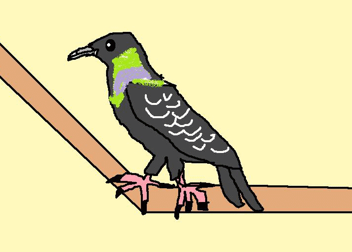 ちい坊(6)作、昼間の「アンデスコンドル」。すました顔が作者似です。「鳥」に凝り始めたちい坊。昨日から鳥の図鑑とにらめっこしながら次々と制作に励んだようです。平仮名がちゃんと書けないのにローマ字入力で「保存」できる不思議。これもちい坊作で、夜の「オオルリ」。開けたくちばしと月の描く弧が相似形で楽しい。「セキセイインコ飼いたい!」とちい坊。この秋、野生のヒヨドリを手に乗せたことがあって鳥に対してなお親近感を持ったようです。でも何せ生き物相手のこと、もう少し大きくなってからね~とは返答したのですが・・・。