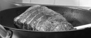 昨日はここまででした。<用意するもの>・・・忘れていました・牛肉:1キロ(モモなりロースなり予算に合わせて)・香味野菜:適宜(セロリ、パセリ、ピーマン、人参、玉葱、長ネギ、ニンニク、生姜)・塩、胡椒:適宜さあ、再開します。7.肉を容器に入れ、切った香味野菜を全部詰めます。 なんか「眠れる森の美女」って感じ。8.220度に熱したオーブンに入れ20分、肉を返して20分。 初売りで買ったオーブンが大活躍!9.焼き上がりはこんな感じ。野菜がぐっと減りました。 金串を刺して焼き具合を見ます。 適当な量の赤い肉汁が出れば出来上がり。10.さあ切り分けます。 よく切れるナイフで薄~く切るのがコツ。 簡単な料理なので、切るのが一番難しいかも?しれません。11.こんな感じに盛りました。 取り合わせの野菜を準備していなかった・・・まあいいや! さあ、いただきま~す! ウチでは、レモンと醤油と山葵で食べます。 え?味ですか? 言うのは・・・控えさせていただきましょう!