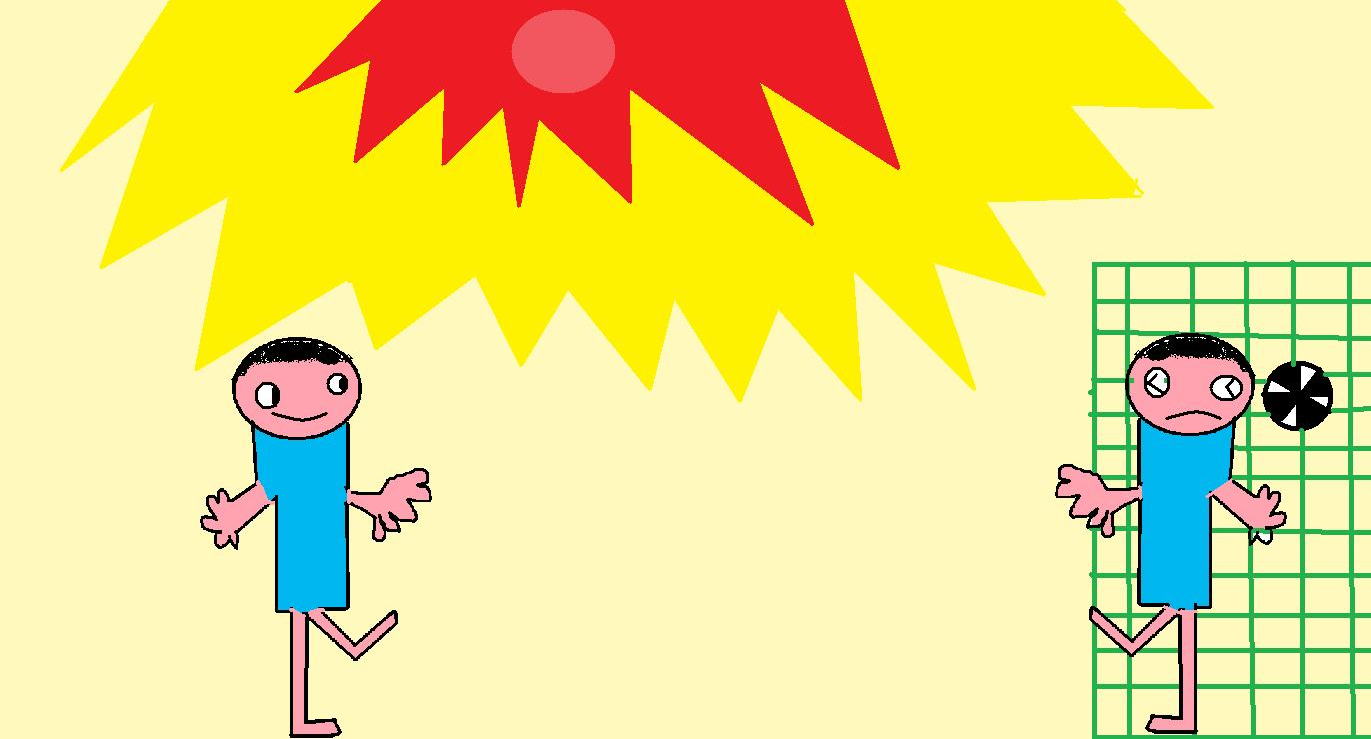 前回は野球で今回はサッカー輝く太陽の下、元気に遊んでるね題名がユニークで楽しい こどもたちの熱もやっと下がった明日は学校行くんだよ~!ちい坊作 「サッカー100たい0」