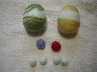 卵型の本体の発泡スチロールに羊毛を薄く伸ばしながらきつく巻かなくちゃいけないんだけど、”薄く””きつく”を同時にできませんでした。。。(--;)