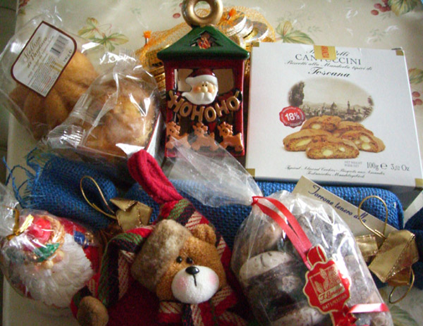 昨日のこと。やたらと”バレンタイン”とか”チョコレート”と煽り立てるメディアにちょっと辟易とした気分で迎えた今年のバレンタインズデー。一方、オットMasaは一日早くイタリア語のクラスメートさんたちに美味しいチョコをいただいて大満足。何度も繰り返し、箱を、袋を眺めてうっとりしておりました。そういえば昔、学校勤めをしていた頃。生徒達には「バレンタインとか言って学校に要らんもん持ってきたらあかんぞ!」と、かなり厳しく言っていた同僚男性陣。なのに、なぜか2月14日だけは一日中挙動不審な人が多かった、特に女生徒から人気の高い人。朝はいつもよりもぐんと早く出勤し、休み時間になるといつものように職員室へ直行ではなく研究室に篭もったり・・・用もないのにクラブハウス周辺の見回りに行ったり・・・そして、生徒達が下校し終わったあと。。。。。8時ごろの職員室では、同僚達を牽制しあいながら、いくつ貰った!?と探りあいっこ。良い大人が・・・・と思う反面、こんなにはしゃいで過ごせるってオトコの人にとってバレンタインデーって勝負の時って思うんだなぁ、なんて考えた。で、今年の私。昨日 - バレンタインデーの朝、チョコがいっぱいの箱を受け取りました。でも、これはバレンタインプレゼントじゃない。。。。開けてみると、チョコレートにパネトーネ、パンドーロ、トローネ・・・・そしてサンタクロースの飾り、クリスマスキャンドル?!?!?! ・・・・・・。今年の(いや、去年の!?)記録の箱です。なんでクリスマス前に航空便で送ってくれた箱がバレンタインに到着?!イタリアの郵便屋さん。しっかり仕事しようよ!ひょっとして、いつぞやのようにゴールデンウィークを過ぎた頃にメリークリスマス!なんて書かれた箱が、まだ届いたりして!?