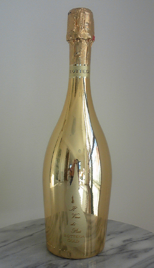 この年末年始、お世話になったピカピカさんをご紹介年越し参りを一緒にしよう!と大晦日の深い時間に友人来訪。新しい年がキラキラした素敵なことに包まれますように!との願いを込めて買っていたのがこれ。VINO DEI POETI SPUMANTE GOLDボッテガ・アレキサンダー / BOTTEGA ALEXANDERイタリア(ヴェネト)見事に輝くボトルに一目惚れして箱買い。ボディは金の鏡張り。(フィルムのコーティングじゃないんです、これが!)ボトルの口まで見事にキンキラ金色。肝心の中身は、キリッと辛口の泡でした。色はボトルよりちょっと淡いめの金色。お正月来、飲んでは眺め、眺めては飲み・・・このままではこんなキラキラ、飲み干してしまう!と慌てて写真に残してみました。でもどの角度から撮ろうとしても反射して、ホント、撮りにくい撮りにくい。ボトルに格闘するCikoが映り込んでいるのはご愛嬌ということで