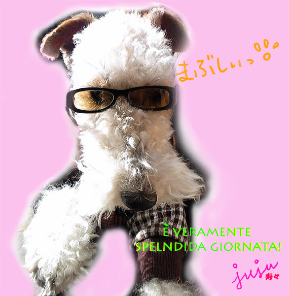 昨日は良い天気に誘われて寿々と一緒に大阪市内某所へ。そこはとっても素敵な人たちがいるところ。近くには広い公園があって、ドッグカフェもたくさんあって・・・・朝からたくさんの人たちが行列する美味しいパン屋さんが何軒もあって。Cikoの用事待ちの間に、寿々がモデルに。実はこれ、愛犬家の方が犬と一緒にビーチにお出かけするときに「犬が僕の横を歩いてると、僕の足から跳ねた砂が目に入って可哀想で・・・」とオーダーされたときに一緒に製作された手作りのペット用サングラス。普段はカメラ大好きの寿々、初めてのメガネをかけて最初はクンクンチェックに大忙し。ところが5分もすると眩しくないことに気づいたのかとってもおとなしくグラス越しにゴキゲンの表情。これからどんどん紫外線の強くなる季節です。疲れるだけでなく色んな目の病気の予防のためにも、日差しの強い日にはサングラスがお勧めです