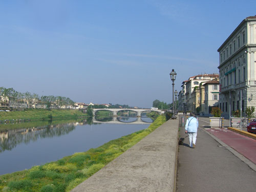 メーデーの日にイタリアにいたら結構たいへんなことが多い。バスもタクシーも動かない。市内のバスだけでなく、中長距離の街まで行くバスも全て運休。お店も大多数が休業。こうなると移動手段は・・・足。5月になったばかりとはいえ陽射しは夏モード、お水を持ってとにかく行ける所まで歩いてみた。街の中は暴走バスがいないのでなんとも静か!アルノ川まで到着! のどかな休日の過ごし方は万国共通?みごとに等間隔に並んで釣り糸を垂れる人たち。 この先を進むとカッシーネ公園。火曜のメルカート、メーデーでもやってるかな???とりあえず向かってみると・・・・ 気持ちのいい木立。お散歩する人、サイクリングする人、テニスコートからはポーン、ポーンッとラリーの音。街の中にありながらこんなに簡単に森林浴が出来るなんて本当に素敵!メルカートやってなくても、まぁいいか・・・なんて言いながら前進前進やってました!朝8時過ぎにしてこの状態。 地図を見る限りかなり大きな公園、果たしてメルカートはどこまで続いているのか・・・?そんなこと知りもせずひたすらブラブラと歩くMasaと私。まずは定番のチーズ屋さん。 なぜかここのお店、女性はあまり足を止めることがないのにオジサンたちは必ずといっていいほど立ち止まってじっくりと眺めていく。おじさんホイホイなお店!チーズ以外にもプーリア産のドライトマトや固焼きクラッカーのタラッリも! カラフルなお菓子屋さんの屋台。この時間にはまだ子供は殆ど見かけない。 こちらは苗屋さん! トマトだけでも10種類近くある。きっとお料理によって使い分けしてるんだろうなぁ!ちょっと進むとパニーノの屋台。 匂いに誘われてフラフラ~っと・・・いやいや、さっき朝ごはん食べたばかり!まだまだ歩きます!フレッシュな果物やお野菜のお店も! アスパラガス一束の大きいこと!こんなにあったら朝昼晩アスパラ料理だよ。 面白いもの発見!!フリスビーのようにディスプレーされたパンツ☆よーく見ると3枚重ね、5枚重ねなんてバージョンあり。日本ではこんな風に売られてるパンツは見たことがありません。(どなたかご覧になったことありますか?) あまりのパンツに見とれていると二人組みのシニョーラがお買い上げ!フライングパンツのディスクをそれぞれ2セットずつ。。。。ものすごいカラフルなパンツをお喋りの手も止めず(口ではありません。お喋りには必ずと言っていいほどつく身振り手振り!なのです)でも、思ったのです・・・あのお二人のマンマのお尻、どう見てもあのパンツでは収まりきらないんじゃないの?って。あのパンツ、ものすごい伸縮性に優れてたのかなぁ?