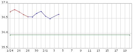 CYCLE DAY 19 36.80 高温期05日目え・・っと。高温期を記録した(と思われる)7日から今日まで毎日0.01度ずつ体温が下がっているのですが。一体 なーーーぜぇーーー(;´д` )なに,なんなのっ!今周期はこのまま ゆる~り と・・・いや・・考えたくないっす。きっと明日から上がるのよね?あああ・・基礎体温に一喜一憂。落ち着け,ワタシ。昨日,クラミジアとCA125(子宮内膜症)の検査結果をUPしたのですが今後の検査予定も載せてみました。フリーページ(通院記録)にあります。なんだかねぇ・・最初 メモ帳に下書きしたんだけどHTMLがすんごいことになっちゃったよ。途中で挫折しそうになりながら最後はもう意地で仕上げました。(←変な拘りをもつB型ですw)夫くんに,「お前さぁ・・十数年前だったらコレで飯食っていけたのになぁw」とか言われました。・・・・。手遅れです( ̄m ̄;ぷぷでも,本職の夫くんに褒めてもらったのでとても気分よく過ごしております(頭のつくりは単純ですから♪)おとといから調子が悪い(キモチワルイ)かった私ですが昨日お昼寝後には復活しました。(え?つわりは?w)・・・で,調子こいて夕飯に焼肉なんて行っちゃって・・別な意味で調子悪くなっちゃったです。そりゃあ 朝から口にしたのがグレープフルーツジュースとおむすび1個ですからね。お腹だってびっくりでしょう。今朝は8時起き(我が家にとって早起きw)してDVDのレンタルとショッピングセンターでお買い物あとは ぐる~~っとドライブして帰宅あ・・・VAIOちゃん連れてったの。夫くんがゆっくりDVD探せるようにね。そうするとおとなしく車で待ってるから,私。自分が借りたいのがあれば一緒に行くんだけど今朝は動きたくなかったんだよねぇ。(ナマケモノ)さっき,サッカーが始まりました。夫くんはTVの前のソファに陣取ってテーブルにおつまみを並べてビール片手に観戦中。15:00までは ある意味おとなしそうです( ̄m ̄;ぷぷこれで私もまったりとネット三昧になりそう。(いつもと変わんないやんっ( ̄ロ ̄;!!) 体調Memo おりもの量 普とにかく眠い(6日から?)吹き出物・・沈静化ビキニラインの ポチッ・・沈静化ムカムカはあったりなかったり2/10 25:30就寝-2006年01月24日~の基礎体温をみる(*^ー^*)