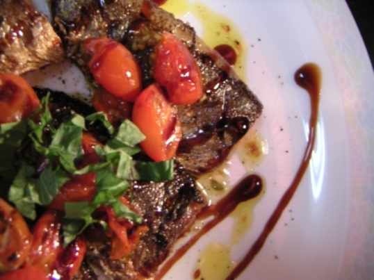 フレンチのメニューで秋刀魚が出てくるのはあまりないかもしれない。ヨーロッパには秋刀魚はいないので秋刀魚の料理は無いが、鰯、鯵、鯖、鰊などはフランス人も大好きな魚だ。だって、青魚は美味しいですからね!!秋刀魚と言うと丸ごと焼いて大根おろしを添えて食べるのが一般的ですが、三枚におろして塩とハーブで軽く〆てから皮目をカリッとソテーして自家製のドライトマトをのせる。黒っぽいソースはバルサミコとガルム(イタリアの魚醤)を合わせたソース。実は、わたしの秋刀魚料理はとても美味しい。