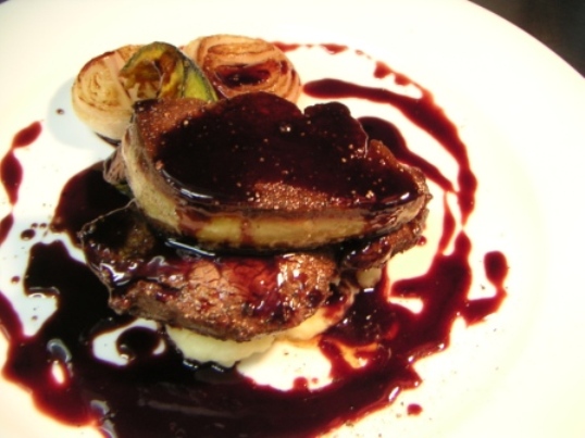 この画像は、牛ヒレ肉のロッシーニ風。牛ヒレ肉の真ん中辺りのトルヌードという部分をステーキにした上にフォアグラのソテーをのせて、本来はトリュフがたっぷり入ったソースペリグーをかけるのだが、、、この場合はまだトリュフの季節でないので赤ワインとポルトのソースを使ってある。 さて、昨日の日記での「ビロードの手袋をはめた鉄の爪」と言うロマネコンティの味わいに対する表現は、出典は明らかでないがフランス人の言った言葉だ。そのロマネコンティの先代の醸造長アンドレ・ノブレ氏が、ロマネの酒蔵で古酒をテイスティングするときに、両手でグラスを包んで暖めながら「キャレッセ(愛撫してあげてください)」とつぶやきつつ、「雨上がりの森に入って拾った、枯れた落ち葉の香りのようだ」などと、とても詩的な表現をしたらしい。また他にも熟成した赤ワインをほめる言葉に腐葉土(極端な場合肥溜め)濡れ犬、汗ばんだ乙女、etc..とか我々日本人からするととても美味しそうとは思えないような表現が結構ある。昔ベルサイユ宮殿には、ご存知の方も多いかもしれないがトイレがなかった。近代になって下水道が出来るまではパリの街はおそらく当時世界一の悪臭に溢れていたといわれている。だから香水が発達したのだろう、、。やはり香りや匂いに対する感覚がかなり私たちとは異なると思う。最後に文豪アレクサンドル・デュマの名言。ブルゴーニュの最高級白ワインモンラッシュ(高いものは軽く30万円を超える)に対して、「脱帽し、膝まづいて飲むべし」と言ったそうだ。