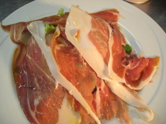 ワインのあて(つまみ)と言うと誰もが思い浮かぶのが、チーズとハム類ではないだろうか?チーズは、フランスの主な物だけでも300種類以上はあるから、これとワインとの組み合わせと言うともう無限と言ってもよく、語りだしたらきりがない。かつて、フランスの大統領だったミッテラン氏が、在職中マスコミに失政を責められたときに、「フランスには300種を超えるチーズがあり、それぞれの地方の人々がおらがチーズが一番と言って絶対に譲らない。こんな国をひとつにまとめるなんて不可能だ。」と言って開き直った。と言うエピソードがあるくらいだ。 ハム類といっても生ハム、サラミ、ソーセージ類とくるとこれまたかなりの種類がヨーロッパ全土で作られているので、様々なタイプがあり、やはり軽く1000種類は超えるだろう。ワインとの組み合わせを考えると、これまた無限と言ってよいだろう。 そこで今回は話を生ハム、それもパルマ産の生ハムに限ることにする。まずは、シャンパーニュを試してみる、シャンパーニュにもいろいろあるが総じて可もなく不可もなくという感じ。ハムは肉だから赤か?と言うことで試すと、ボルドーの赤、ブルゴーニュの赤どちらもたいして合わない気がする。ではと言うことでイタリアの赤か?これもいっぱい種類がありますねぇ、、。バローロやバルバレスコみたいなクラシックな赤は合わない気がするし、トスカーナあたりの濃いやつもいまいちのようだ。ランブルスコと言うちょっと泡の立つ軽くて少し甘い赤ワインは、さすがにパルマの近くのワインだけあってとても良く合いますね。同じパルマ産のパルミジャーノチーズと合わせると、これはもう止まらないといってもいいくらいだ。じゃあ、ランブルスコで決定!じゃあ、つまらないですよね。なんといっても世界中の食材やワインが手軽に楽しめる国と言ったら日本ほど、何でも手に入る国はないのですから、、。そこで、色々試してみた私なりの結果、シェリーのマンサリーニャ・パサダ・デ・サンルカールとカリホルニアのジンファンデルのロゼを、今月のおすすめコースの生ハムに合わせていただけるように用意してあります。特にシェリーは入手困難なレア物です。 詳しくはこちらから、4月のおすすめコース 入り下の方のさらに詳しいメニューを見るをクリックしてください。