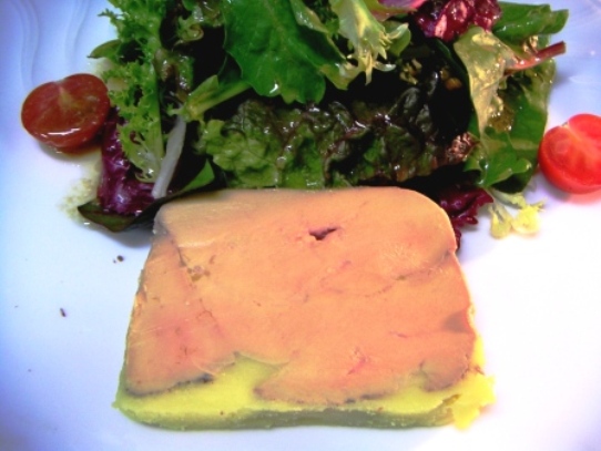 一応締めの話として、、、。 かの世界一のフォアグラを食わせるという、ビストロ「ラミルイ」のテリーヌを食べたのは、91年の秋だった。当時日本のフレンチでフォアグラのテリーヌを食べるとだいたい一切れ¥6000から¥7000くらいだったと思うが、ラミルイでは日本円で¥8000くらいで日本の3~4倍の量が出て来るのだから、だいぶ安いのだが、、、。 何しろ縁がかけたような皿にフォアグラだけが分厚く三切れのっているだけ。付け合わせも何も無い。そして別の皿に炭火であぶったてんこ盛りのバゲット。フランス本国のこういう骨太で男性的な料理を見せつけられると日本のホテルなどのチマチマしたフレンチがまるで稚拙なおママごとに見えて来る。 とにかく、フォアグラをたっぷりパンにのせて頬張る。ラミルイのフォアグラは、当時鵞鳥を使っていたから、ズッシリと重く濃厚だ。こういう場合貴腐ワインと合わせるとあまりに重厚過ぎて量が入らない。むしろ強い赤ワインのタンニンで脂肪分をかわしたくなる。この時飲んだのは、確か83年のシャトー・ド・ポマール まだ若いのでしっかりしたタンニンがあり果実味もたっぷり、ポマール特有の土系の香りやドライフルーツ系の香りも、フォアグラをひき立ててくれた。 まあ、さすがに王道の味。旨かった! あれから15年余りたったわけだが、今私が作るフォアグラのテリーヌはラミルイ並みだと思っている。(うちのマダムはラミルイより美味しいと言っていますが、、、。)サンクオピエというとフォアグラのソテーが、すっかりお馴染みらしいが、実は私自身はテリーヌのほうが断然好きだ。 職業として料理に携わっていると、自分で作った料理を心底楽しめるものではなくなる。何故なら自分で作った料理は、思った通りの味しかしないから驚きも有難みもないのだ。だってプロなのに自分の思いもよらない料理を作っているようじゃ困るでしょ? そんな中で自分で作って自分で美味しいと思う数少ない料理のひとつです。 フォアグラのテリーヌはね、、、。完今なら、フォアグラのテリーヌやってますよ!