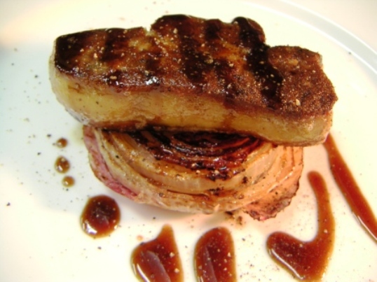 初夏のこの頃、毎年畑の玉葱が出来る。いつも紫色の玉葱と普通の白い玉葱が半々くらい出来るのだが、取れたての瑞々しい紫玉葱をローストして香ばしく焦がした玉葱のカラメリゼはこの時季限定のフォアグラの供となる。うちの畑の玉葱特有の信じられない程の甘さ!フォアグラのトロリとした食感と独特の風味が、香ばしく甘い玉葱と互いに高めあって実に美味しい。