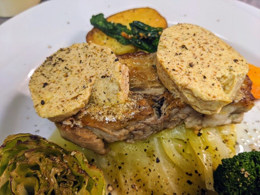 アルザス料理のシュークルートみたいにキャベツと豚肉は相性良いですね。トンカツとキャベツ千切りもですね。今うちの畑のキャベツが美味いので、黒豚ばら肉はトロトロになるくらいに水で煮て、その煮汁を煮詰めてキャベツがトロトロになるくらいに煮ます。肉は一人前にカットして強火で焼いて、軽く焼き色を付けてキャベツの鍋に入れて一緒に温めます。バターを室温に戻して粉醤油を合わせてアルミホイルで成形して冷蔵庫で固めます。キャベツを皿に盛り肉を載せて、カットした醤油バターを載せます。肉やキャベツの熱でバターを溶かしながら召し上がっていいただきます。美味そうでしょ?!