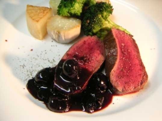 アメリカ産飼育雉の胸肉のポワレ、千葉県産鹿背肉(サーロイン)ロースト、