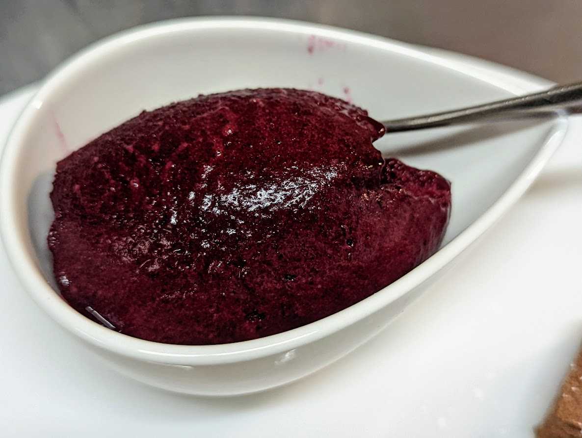 こちらは、梅酒感覚と言いますか、サラリとしていてストレートで飲んで美味しいリキュールです。カシスのソルベはもちろん、ベリー系のニュアンスがあるマンジャリの生チョコにも、栗とアーモンドのケーキにも相性が良いです!