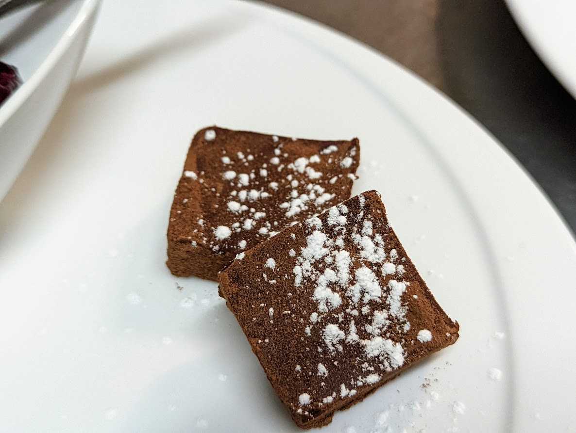 フランスの高級ショコラ、ヴァローナのマンジャリの生チョコです。このチョコは後味にベリー系の酸味と香りがあってとても華やかな印象。美味いですよ!これらデザートには、、、