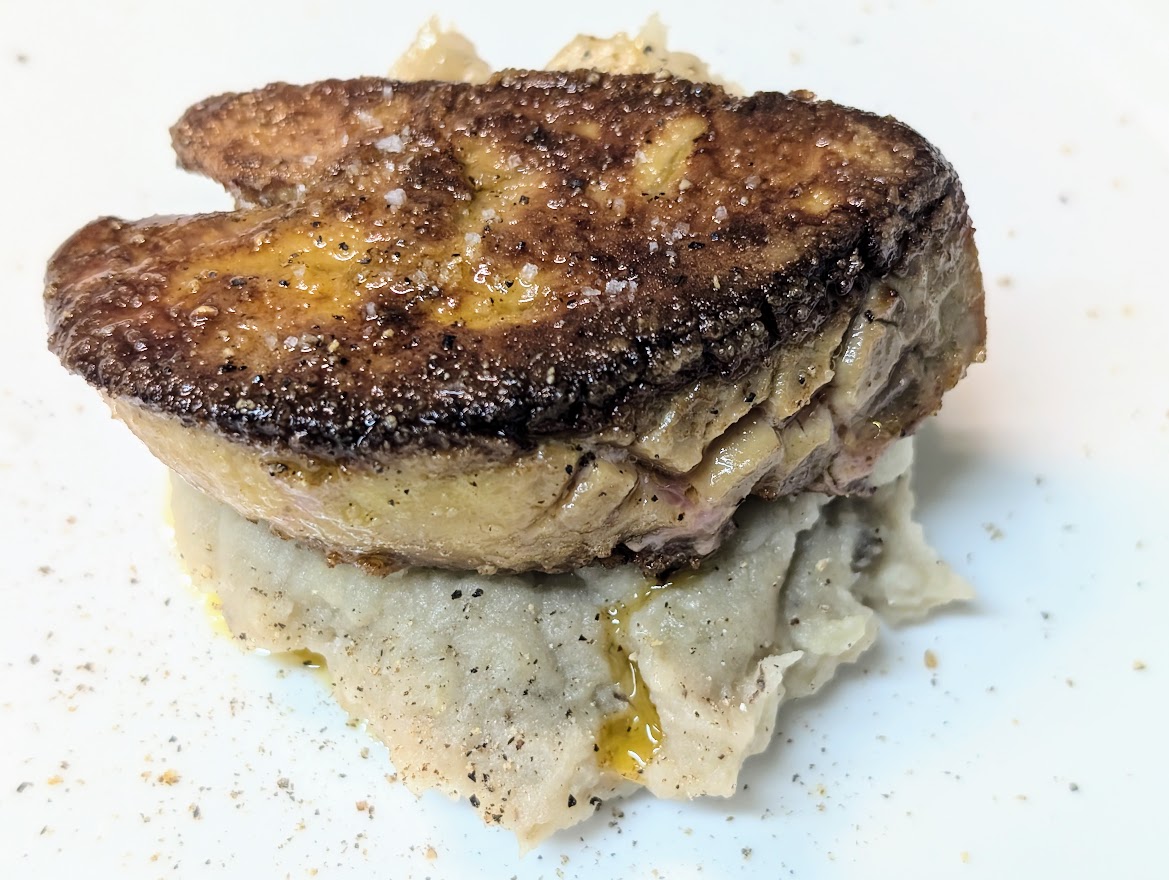 フォアグラのソテー、トリュフ風味のジャガイモのピュレ添え