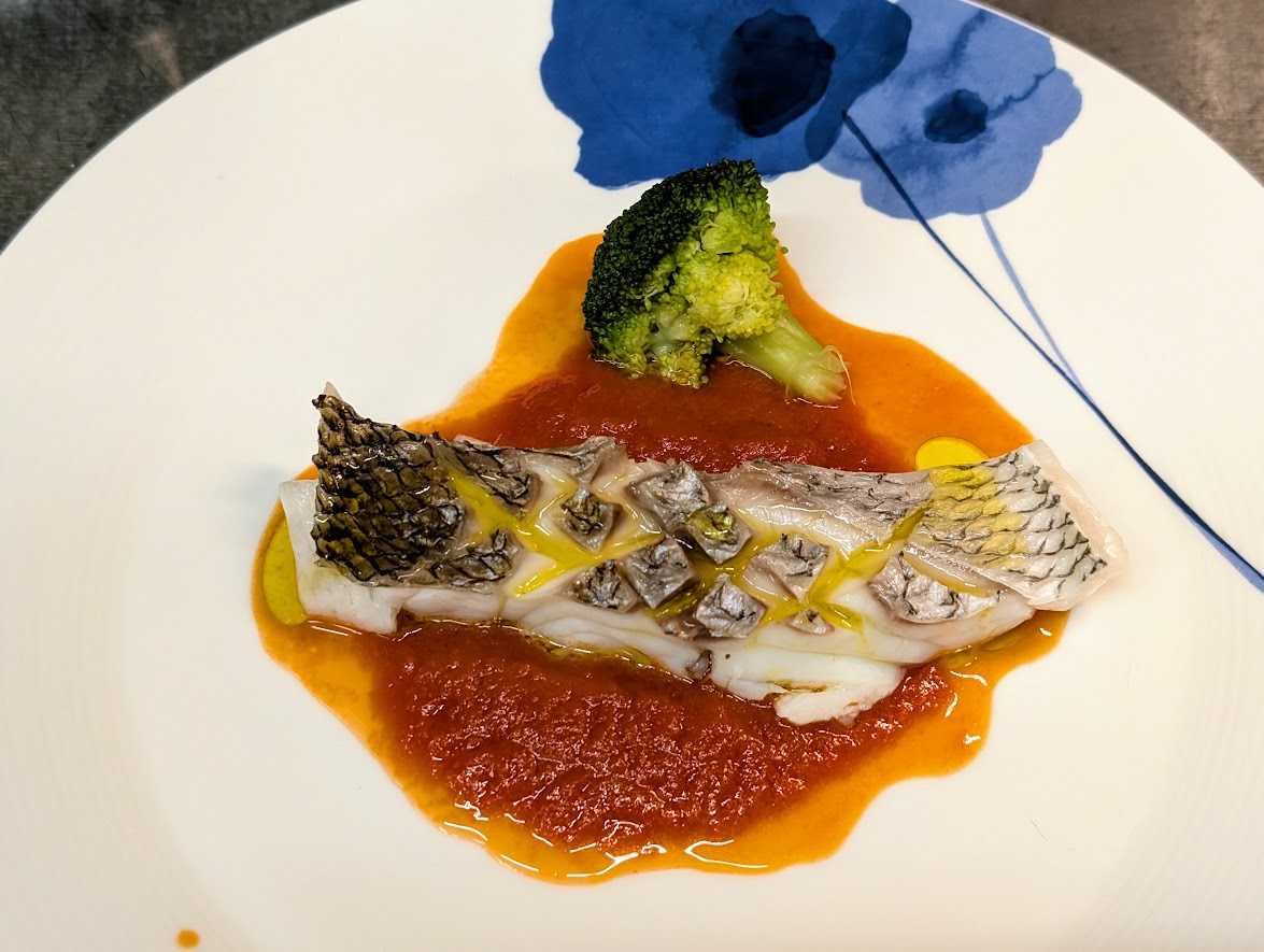 Poisson du jour a la Vapeur Coulis de tomate au Vinaigre de Xeres LUSTAU.