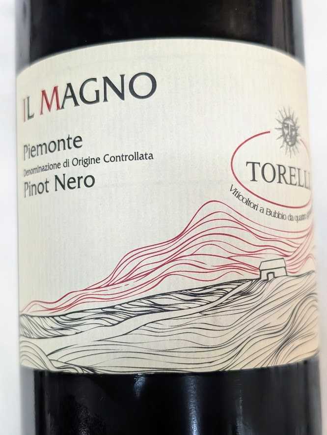 Piemonte Pinot Nero IL MAGNO 2019 Mario Torelli ピエモンテ・ピノ・ネロ・イル・マグノ、マリオ・トレッリ イタリア、ピエモンテ州のピノ・ネロ(ピノノワール)です。ピノは飲みたし、ブルゴーニュは高し、、。ということでイタリアの奇麗なピノノワールです。ベリー系のニュアンスは控えめですが、湿った土の香りやきれいな酸味、温暖な気候で良く熟したブドウからできるしっかりしたタンニンとボディーの強さがあります。ブルゴーニュで言えばポマール的な強い力を感じるワインですね。杜仲高麗豚のしっかりした旨味とほんのりニンニク風味の赤ワインソースの強めの旨味によく合いますね!