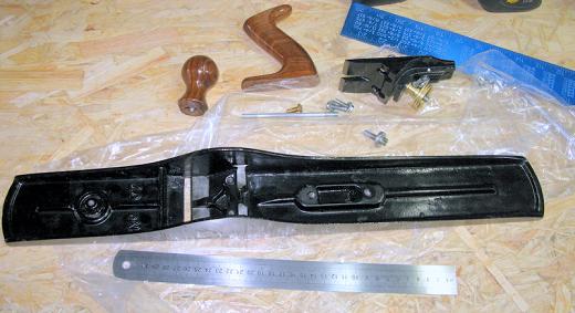 英国から安価な鉋を2つ購入した顛末の続きです。長い方の鉋(55cm)は刃の厚みがスペックと異なっており代品を2度送っていただいたのですが、なぜか輸出業者からAmazon UKに2度送り返されました。Amazonも対応に窮したのか最終的には返金処理となってしまいました。恐らく送り先の情報伝達がミスマッチしたのでは?と今では思っています。1ヶ月ほどやきもきしましたが結果としては手元に鉋はあるので現状で使ってみたいと思います。分解整備を始めると・・・見かけは良いのですが本体のベース面は平面が出ておらず修整が必要です。刃を研ぎなおそうと点検すると、これまたかなり曲がっています。歪んだ刃を木片の上でプラハンで叩き修整し、最後の仕上げに軽く二三度叩くとナント!刃先が割れてしまいました。---予想外の粘りの無さです。-----割れた面は鋳物の表面のような状態です。幸い西洋鉋の刃は十分に長いので短くカットし刃先を付け直す事にします。高速切断機で時々水をスプレーしながら刃をカットしました。ベルトサンダーで25度程度に刃先を加工します。未だ仕上げ研ぎを行っていない他の鉋の刃もまとめて砥ぎ直しています。