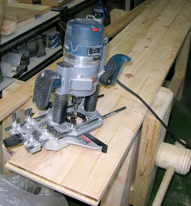 トレイ底板のエッジをルーターで段欠き加工しました。ビットの刃先は熱が金属より逃げないためか思ったより焼け易いです。側板に蟻組みのラインを引いています。アルミアングルを80°程度の角度でカットし線引きのガイドとしています。Zソーの胴突鋸でラインに沿って切り込みを入れます。鑿で蟻組みの形を整えました。Narexの鑿は少し材質が柔らかいようです。作業中に先端が曲がったので刃を付け直しました。サイド板のピン側もカットします。加工したトレイの材料を組み合わせて接着しています。--両サイドと底板は木材の伸縮対応のため接着していません。