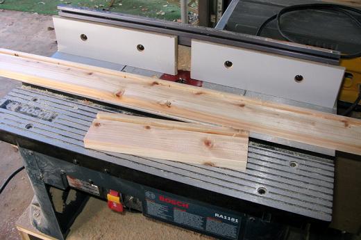 ホームセンターで檜材2000x105x22を5枚購入しツールトレイの加工を始めました。90°のエッジを立てるために木製バイスにセットし鉋掛けします。ガイドの添え木を西洋鉋に両面テープで貼っています。両面テープだけだと長くは持たないのでクランプで留めました。エッジが立った3枚を接着しトレイの底板にするためにテーブルソーで歯幅の溝を入れました。薄板を溝に挿し入れて張り合わせる予定です。