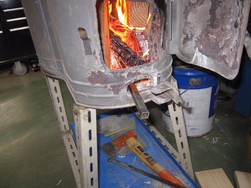 ガレージでは薪ストーブを使い始めています。そういえば・・と思い出し熱源があるので13mmの角パイプをストーブに突っ込んで赤めます。赤くなったパイプをハンマーでぶっ叩いてロングエクステンションを作りました。相方の方は片目片口レンチのスパナ側を落とした物です。車の足回り整備用に使えるかな・・です。以前、足回り用に調達したエアインパクトですが製品の能力が十分発揮できていないようなのでエア流路の見直しを始めました。USではHi Flowタイプのカップラーなどもありますが出来る事から試してみます。まずエアカップラーを分解してみました。中心の真鍮バルブ部分には3mm強の小さな穴が2つ開いています。この穴の周囲から90°ターンしながら中心部にエアは流入するようになっています。試しに4mmの穴を追加してみる事にしました。割と微妙な作業です。ドリル穴を貫通させバリ取りしました。組み立ててエアインパクトを動作させてみました。以前よりトルクアップしたように感じます。これからも色々と見直しを進めて行こうと思います。