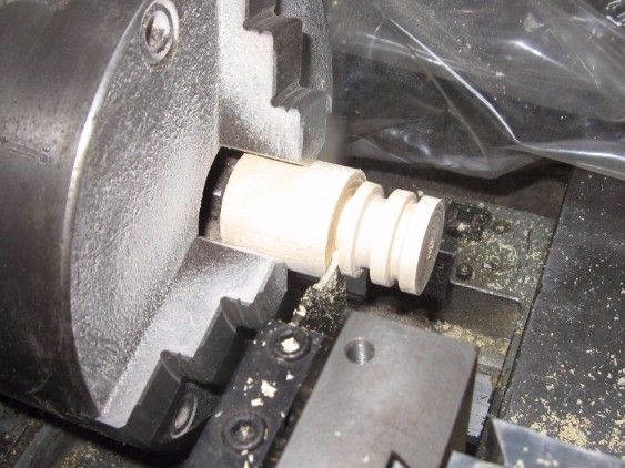 革のエッジを綺麗に仕上げる道具も作ってみます。手で磨く溝付丸棒でも十分なのですが・・せっかくドレメルを持っているので、活用したいと思います。先日、作ったハンドル材の残りを旋盤で加工します。溝入れして底をヤスリやサンドペーパーで丸めました。ドレメルの軸径に釘が合いそうだと睨んでいたのですが、ピッタリ正解!でした。釘頭をグラインダーで削りT字型にします。シャフトを埋め込んで接着し完成です。