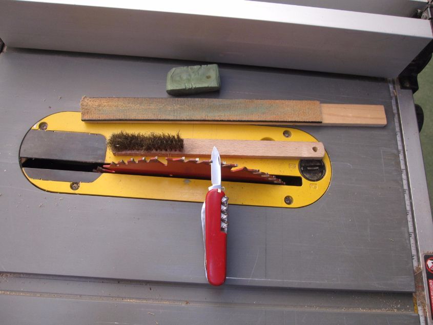 ガレージ内の壁に追加でもう少し棚板を貼ろうと思います。最初に切れ味の落ちてきたテーブルソーをチョイと整備します。長く丸のこ刃を使っていると刃先の周りに焼けたヤニなどが固着します。---- 小型のナイフや真鍮ブラシでヤニを落とします。次に適当な角材に使い古した革ベルトを切って貼付け青棒を塗りつけて革砥としました。テーブルソーの電源プラグを抜いてから・・少しづつ回しながら刃先の先端を革砥で磨きました。1x4材を買ってきてテーブルソーで二つ割りにし桟を作ります。ガレージ奥の引き戸の周りに桟をネジ止めし・・板材を60cm幅ほど貼りました。この壁のスペースには自転車パーツなどを片付ける予定です。