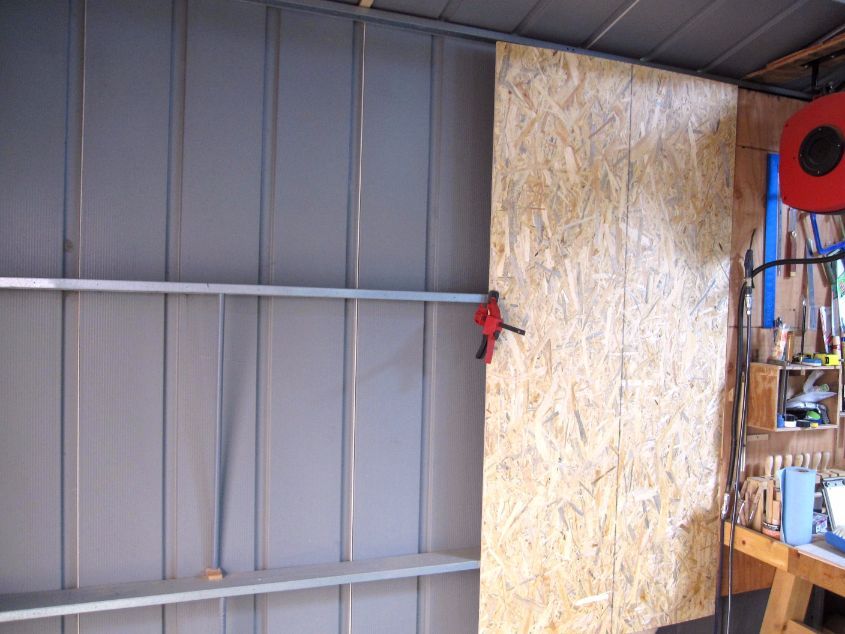 部品棚を撤去したスペースを有効活用するために壁面に板を貼ろうと思います。近くのホームセンターからサブロクのOSBボードを3枚購入し軽トラを借りて運びました。一部カットにはWorx Sawを利用。小型で軽く使いやすいですが気を抜くと直線切りで曲がります。ボードを3枚貼って完了です。・・・木工ワークベンチも手前に移動しようかと思案しています。