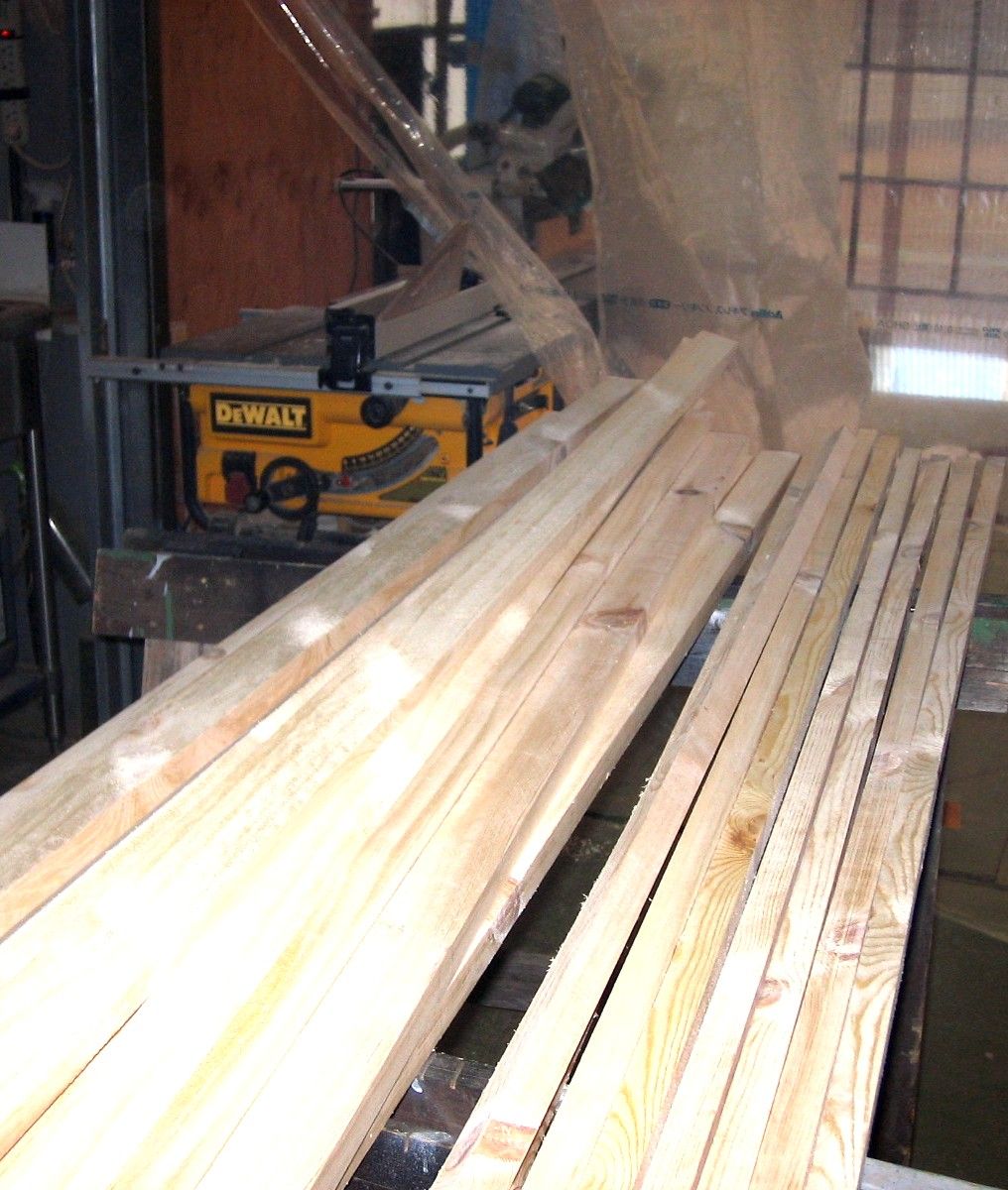 昨年11月に整備した小型コンプレッサーは作業デッキ上に置いてますが大型コンプレッサーはガレージ裏の簡単な小屋に設置しています。ガレージ全般も経年劣化が進んできたので補修すると共にコンプレッサー小屋も作り直そうと思います。4mの角材10本縛りをホームセンターの軽トラで搬入しマイターソーで半分にカット、テーブルソーで二つ割りとし細い角材を作りました。作業デッキ上に角材2本を90度に留め、それを基準として波板を並べ、横桟をネジ止めして行きます。波板3枚と4枚のパネルを作り後で合体させ小屋の壁とします。・・・続く