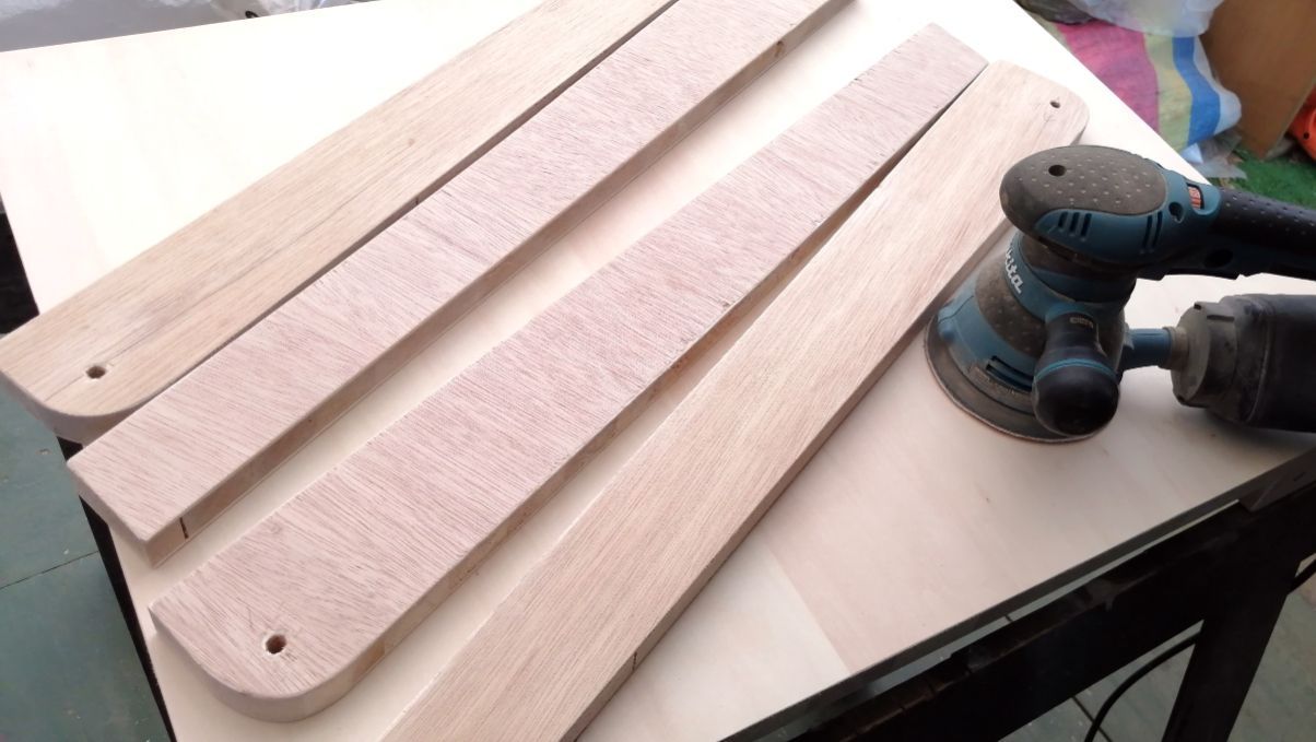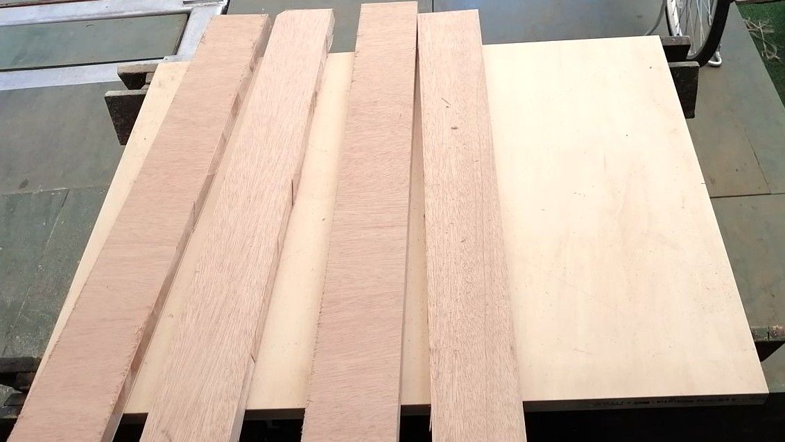 ガレージ内の作業テーブルは立ち仕事を基準に作ったものばかりなので小休止用のコーヒーテーブルを作ってみようと思います。先日、軽い合板を工務店さんから頂いたのでサイズはリサイクル材の大きさ通りとし高さは7 2cmを目標とします。脚用に4本、合板をカットしました。テーパーレッグにするため切り出して鉋で仕上げます。脚折部の穴を位置決めし、加工します。脚の固定部をコの字型に作りました。取付ネジは8mmでやってみます。ちょっと仮組してみました。これで大体、行けそうでなので細かな仕上げ加工に入って行きます。・・続く・・