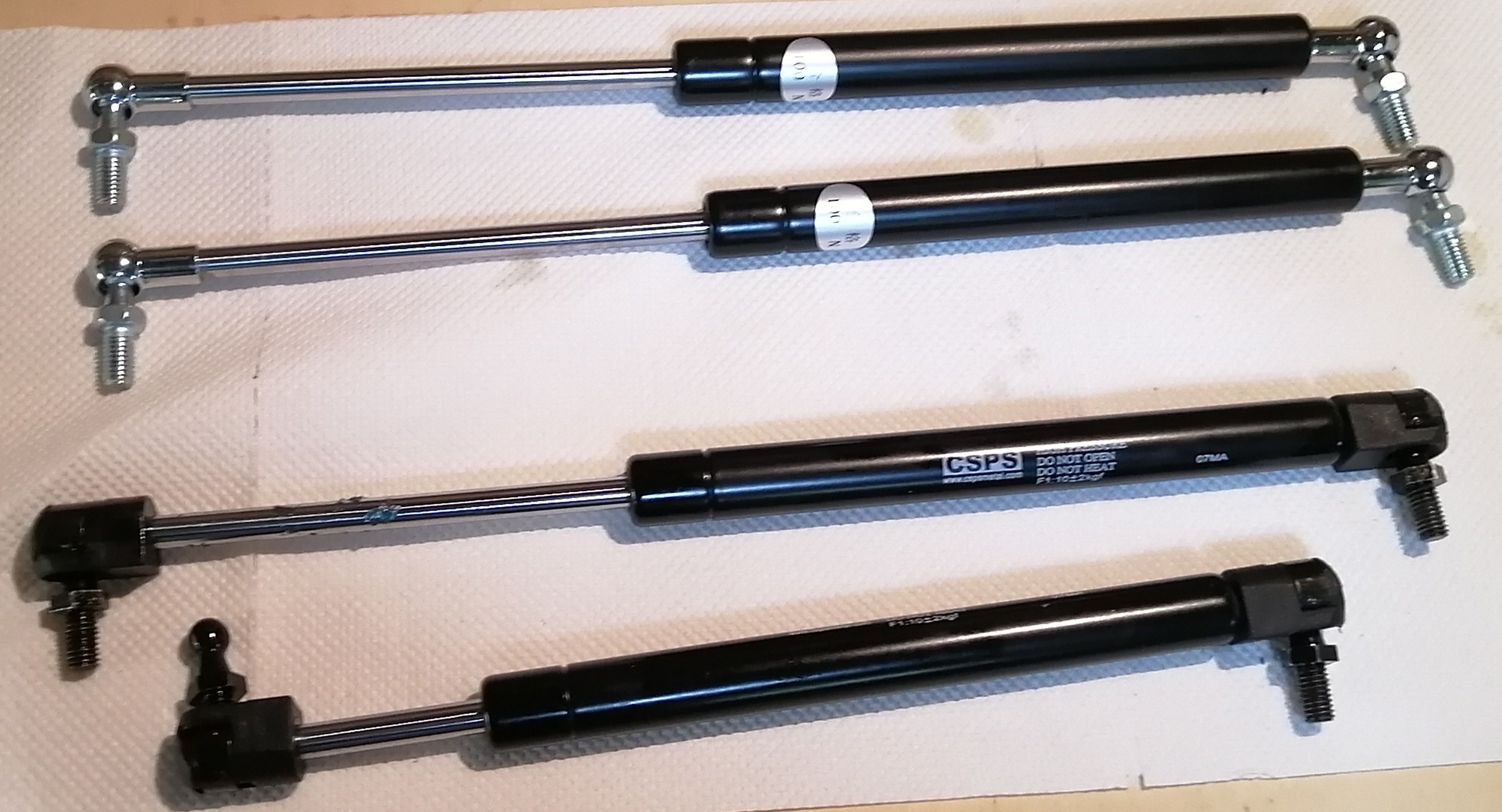 比較的、大型の工具キャビネットを愛用していますがある日、上蓋が急に重くなってしまいました。上蓋の重量を支えるガスストラットが抜けたようでオイルも漏れ出しています。暫く支木で我慢していましたが同等仕様の製品をeBayでやっと見つけられたので注文しました。今の時期、中国に発注したくなかったのですが他に同等品を見つけられず・・已む無しです。深圳の空港で暫く留まっていましたが3週間ほどで入荷しました。写真下側が抜けたストラットです。幸いストローク、径、取付寸法、ネジ、支持強度ともほぼ同一です。・・交換して軽快な開閉が復活しました。。