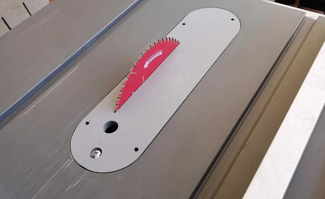 Dewaltのテーブルソー用・・インサートの塗装が乾いたので組み立てました。イモネジを4箇所調整して面だししました。ブレードとの隙間が殆どありませんので・・薄く切った端材が巻き込まれる事がなく安心です。計ってみると42mm程度の厚さの材料まで普通にカットできます。試しに硬い板を挽いてみると・・歯数60なので切り口は綺麗です。これからは・・こちらがメインブレードになると思います。