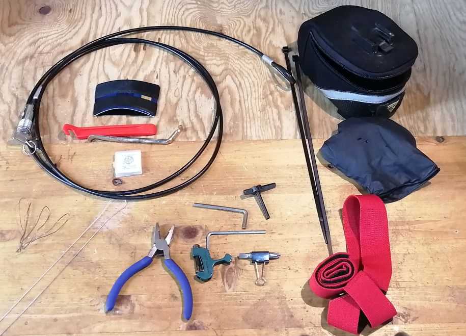 昨日はckさんが声がけして頂いた自転車走行会に参加しました。https://minkara.carview.co.jp/userid/346107/blog/46012223/https://minkara.carview.co.jp/userid/2676217/blog/46012024/皆さんパワフルなので・・なんとか着いていった感じです。(^_^;)途中で同走者の自転車装備が破損するアクシデントもあったりなかなかに・・ハードな一日でした。てな事で・・サドルバッグの工具を見直しました。タイラップと針金を追加し・・小型ペンチ、六角レンチ、チェーンカッター、ニップル回し付きレンチに・・プラス・マイナスのビットにペーパークリップを噛ました物を追加しました。・・こんなモノでもビットドライバーとして機能します。😁