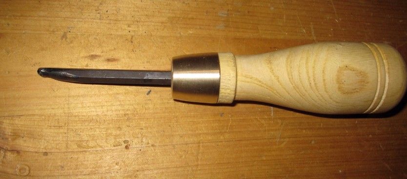 前日に薪ストーブに放り込んでおいた6mmの六角レンチに2.5mmの斜め穴を開け